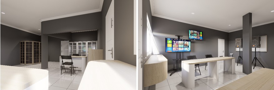 Selain merancang furniture simpan, Tim PKM juga mengusulkan penataan ulang layout ruang Posyandu. Area penyimpanan ditempatkan di bagian dalam ruang, dekat dengan area konsultasi, namun tetap terlindungi dari akses pengunjung umum. Penataan ini bertujuan untuk menjaga keamanan dokumen, memperlancar sirkulasi ruang, serta menciptakan tampilan ruang Posyandu yang lebih rapi dan tertata.
